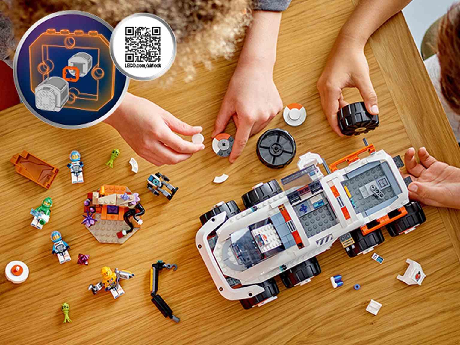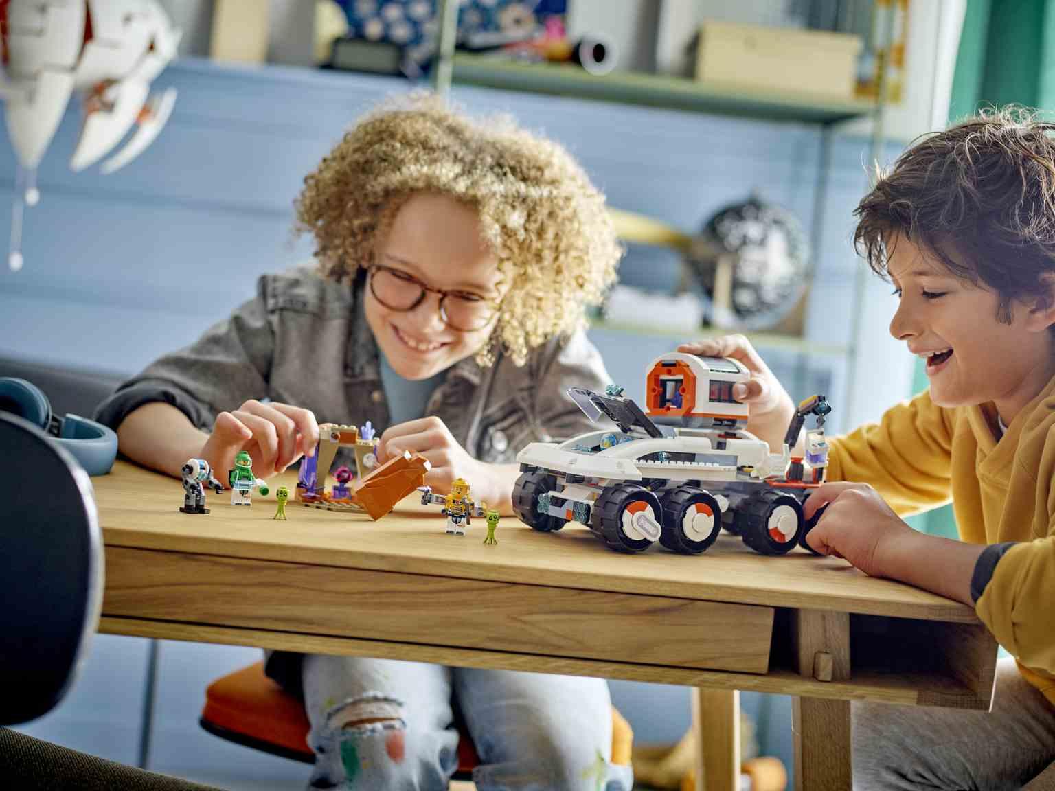 Sienta las bases de la exploración interplanetaria con el juguete LEGO® City Róver de Control y Grúa de Carga (60432) para peques a partir de 7 años, que tiene todo lo necesario para explorar planetas lejanos, como grandes neumáticos, escotillas de almacenamiento de muestras, un brazo de grúa y puerto para estacionar el laboratorio. Se incluye, además, una escena con plantas extraterrestres y un cristal de energía. Agrega las minifiguras de 4 tripulantes espaciales más las figuras del robot y los extraterrestres para vivir épicas aventuras. Ofrece a tu peque una apasionante aventura con la app LEGO Builder, en la que podrá acercar y girar los sets en 3D para visualizar los modelos desde todos los ángulos. Los sets espaciales LEGO City incorporan vehículos realistas, estructuras detalladas e interesantes personajes. Este set incluye un exclusivo elemento estanco para conectar a otros sets LEGO de temática espacial compatibles (a la venta por separado) y ampliar así las aventuras.