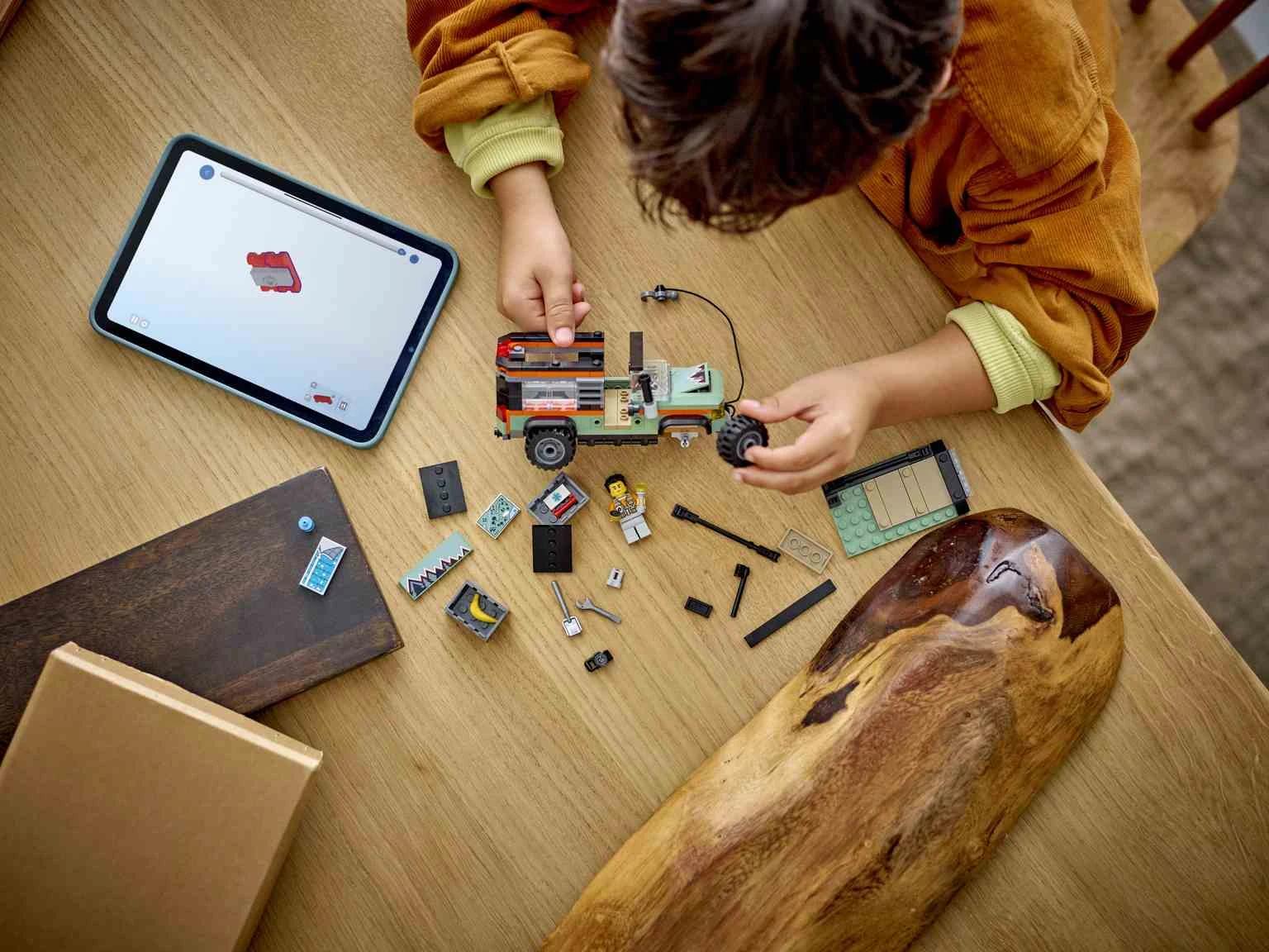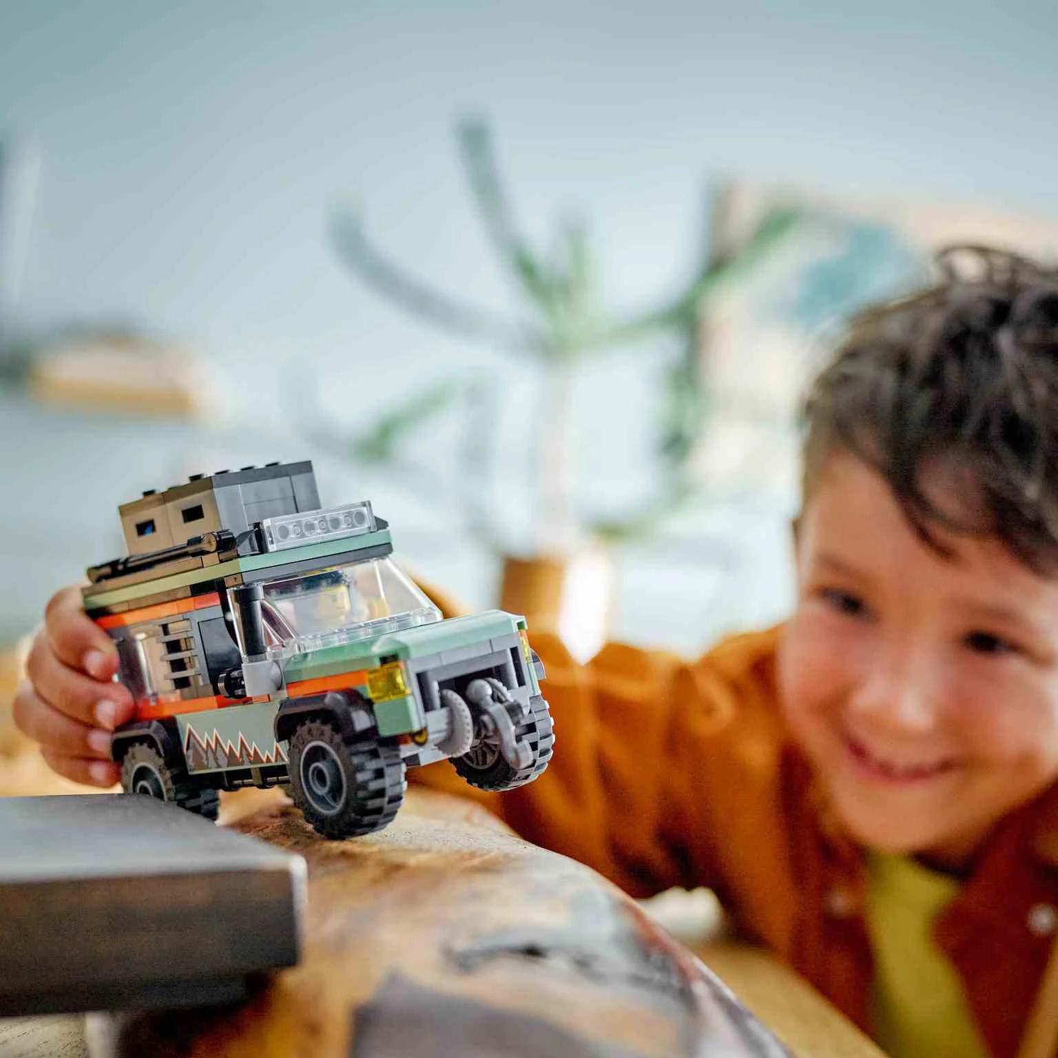 ¡Lánzate a la aventura por terrenos escarpados con el juguete LEGO® City Todoterreno 4×4 de Montaña (60447) para mayores de 6 años! Este resistente vehículo viene cargado de características y equipo para explorar a campo través, como cofres de techo, herramientas, robustos neumáticos y un cabrestante que funciona para subir por pendientes empinadas. Mueve la toma de aire elevada y se abrirá el capó para reparar el motor. Agrega la minifigura del aventurero… ¡y que empiece el juego! Este set con un todoterreno de juguete incluye una guía de construcción paso a paso impresa e instrucciones digitales en la app LEGO Builder, donde los niños pueden acercar y girar sus modelos en 3D, guardar sets y consultar su progreso mientras construyen. Los sets LEGO City Grandes Vehículos ofrecen detallados juguetes terrestres, aéreos y marítimos que fomentan el juego imaginativo. Tu peque puede combinar este vehículo con otros sets LEGO City (a la venta por separado) para ampliar su mundo de juego.