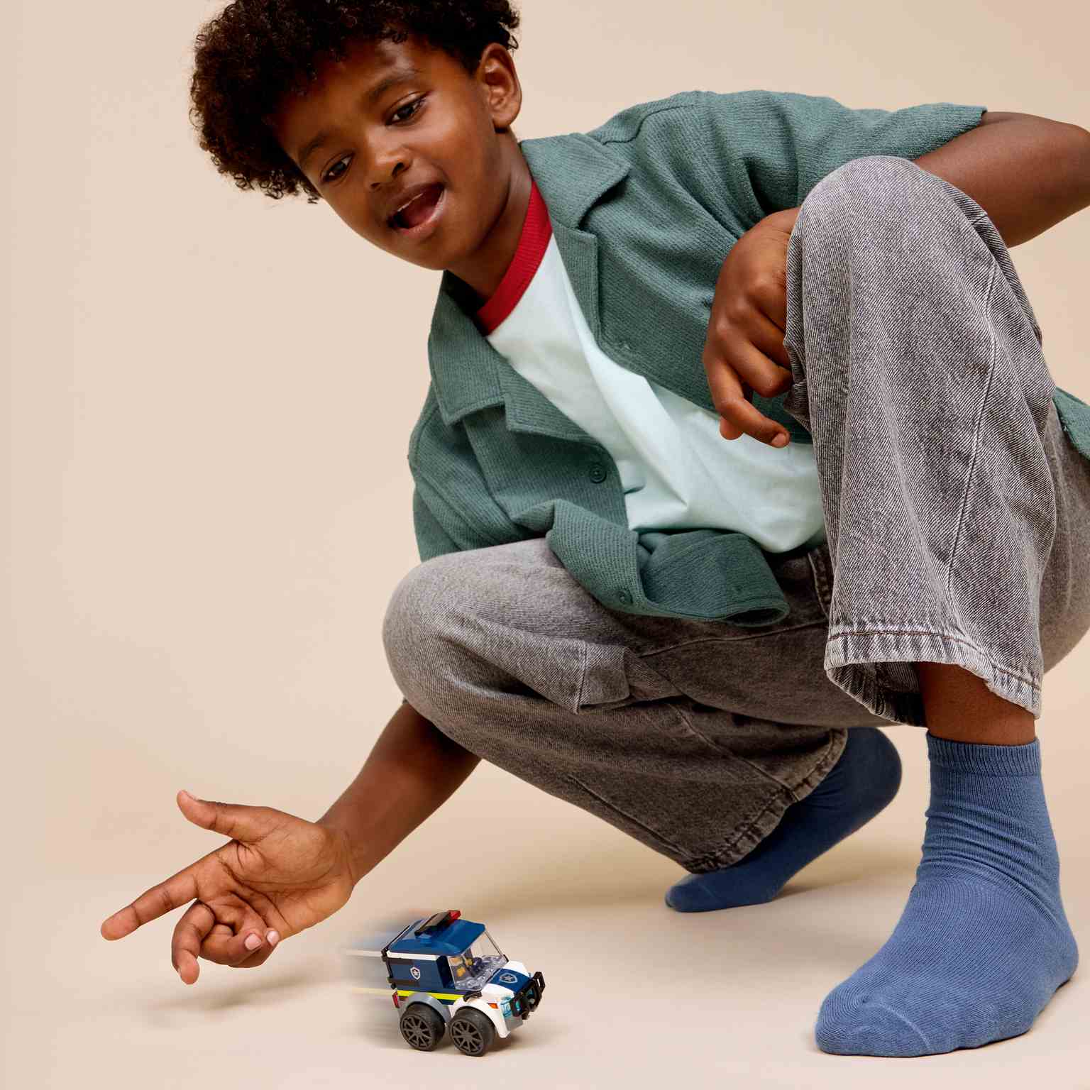 Esta furgoneta de policía fácil de construir, parte de la colección LEGO City Vehículos, es un regalo idóneo para niños y niñas a partir de 5 años que adoren los coches de juguete y los juegos policiales. Combínala con otros sets LEGO City (a la venta por separado) para vivir más aventuras.