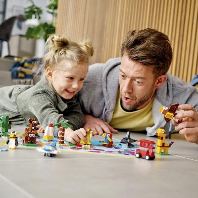 Lleva la creatividad de tu peque a todos los rincones del planeta con este juego LEGO® Classic. Ofrece a los niños 15 inspiradoras ideas para construir basadas en emblemáticos animales y objetos de diferentes partes del mundo, desde un león africano y una palmera hasta un canguro australiano con su simpática cría, así como un póster que muestra el continente de origen de cada modelo. Además, con 950 piezas LEGO entre las que elegir, ¡los peques podrán construir todo lo que sean capaces de imaginar!