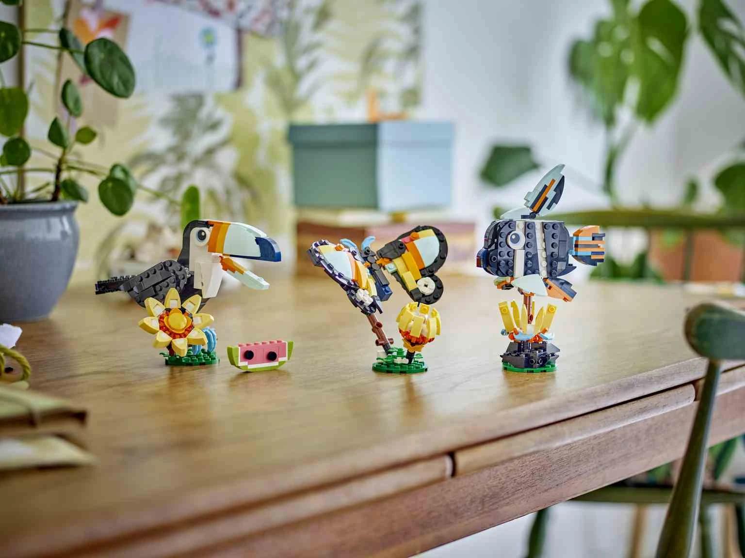 ¡Diviértete en los trópicos con el precioso set de construcción LEGO® Creator 3en1 Fauna Salvaje: Tucán Tropical (31173)! Esta ave LEGO está posada en una rama cubierta por una gran flor para construir, viene con una raja de sandía y, para aportarposibilidades de juego, mueve las alas, el pico y las plumas de la cola. Los niños disfrutan de 3 opciones de construcción de modelos LEGO de animales con los mismos ladrillos: un tucán de juguete con una raja de sandía que puedes colocarle en el pico; una vistosa mariposa de juguete con alas articuladas que vuela sobre su base, formada por hierba y una flor; y un pez tropical de juguete con aletas articuladas que gira 360 grados en su base con motivos del fondo marino. ¡Los sets LEGO Creator 3en1 estimulan la creatividad de los peques con los 3 modelos alternativos para construir de cada caja! Estos sets 3en1 se inspiran en sus mayores pasiones, como los vehículos, los animales y las casas. Los modelos no se pueden construir simultáneamente.