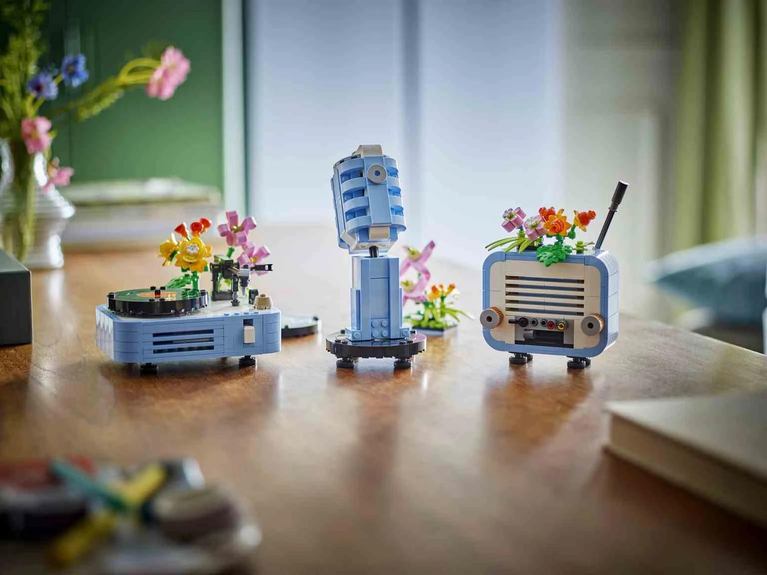 Sorprende a un amante de la música, el arte y el diseño con el juego de juguetes LEGO® Creator 3en1 Tocadiscos con Flores (31172). Este tocadiscos retro para mayores de 8 años cuenta con plato y brazo con aguja móviles, viene con 2 discos y tiene flores que puedes quitar. Los fans de LEGO pueden elegir cualquiera de 3 opciones de construcción de tema musical diferentes: el Tocadiscos con Flores; una radio retro de juguete con mandos, antena ajustable y flores desmontables; o un micrófono clásico con base de flores. Cada modelo puede usarse para interpretar divertidas historias o como atractiva pieza de decoración. Los sets LEGO Creator 3en1, con 3 modelos alternativos en cada caja, son fantásticos regalos para niñas y niños. Estos sets 3en1 fomentan el juego imaginativo y les ofrecen una impresionante gama de juguetes reconstruibles inspirados en algunas de sus grandes pasiones, como los vehículos, los animales y las casas. Nota: Los modelos no se pueden construir simultáneamente.