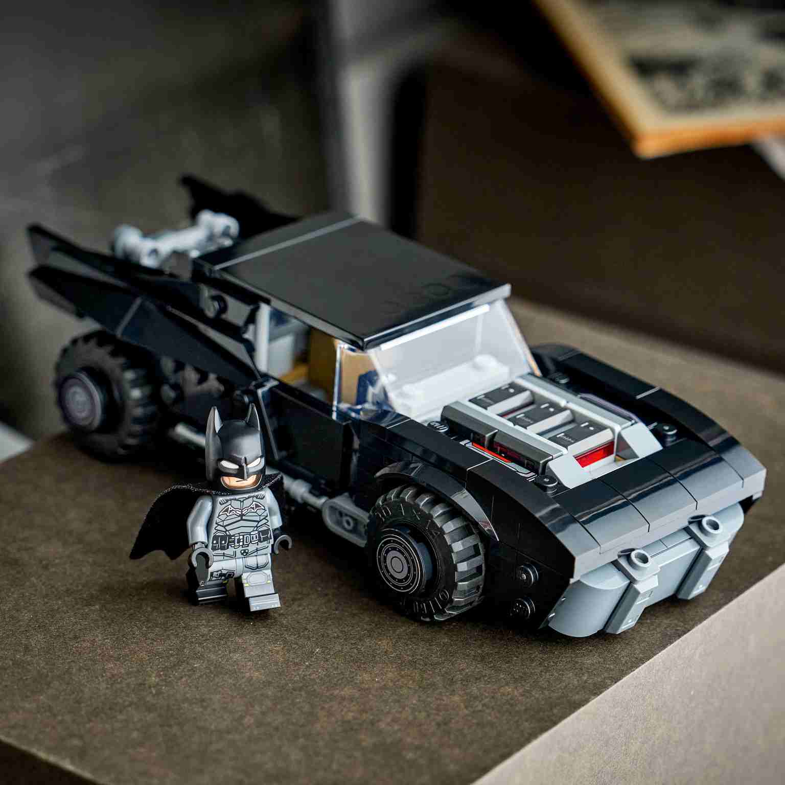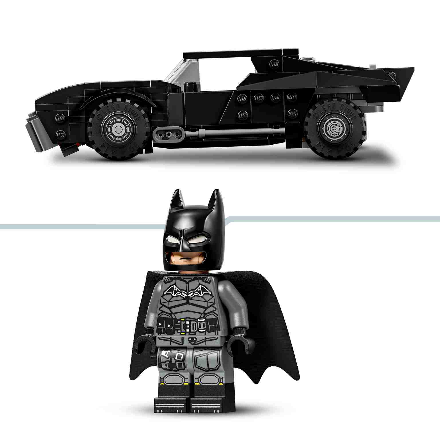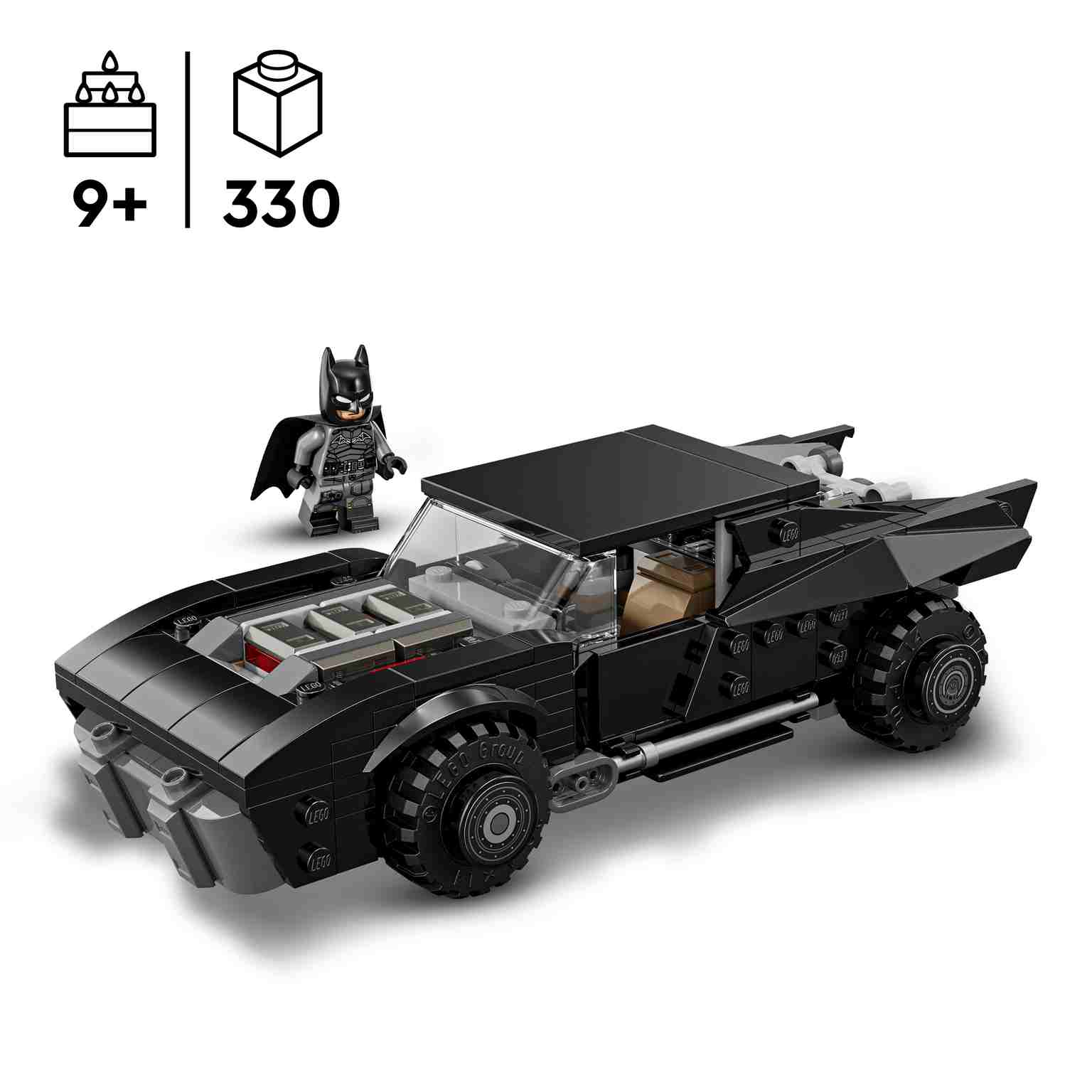 El Batmóvil de The Batman™ LEGO® DC Batman™ está compuesto por 330 piezas y mide aproximadamente 5 cm de altura, 18 cm de longitud y 8 cm de anchura.