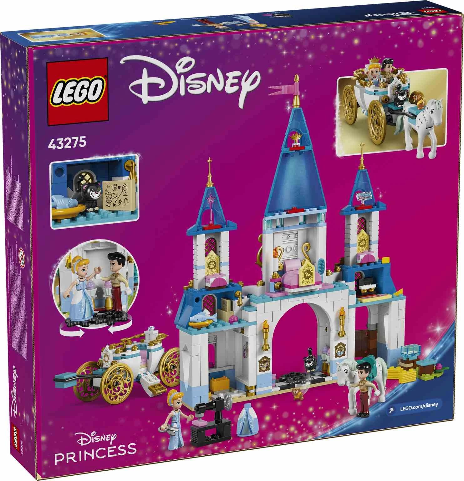 ¡Pon en marcha un sinfín de juegos e historias de fantasía con el juguete LEGO® ǀ Disney Princess Castillo y Carroza de Cenicienta (43275)! El set incluye un castillo construible de 2 niveles con salón de baile (tiene pista giratoria), cuarto de costura y 3 alcobas en la planta de arriba. Junto al castillo hay un establo con heno y una montura para la figura LEGO ǀ Disney del caballo. También encontrarás una carroza con arreos y espacio para los minipersonajes LEGO ǀ Disney de Cenicienta y el Príncipe Azul, así como figuras LEGO ǀ Disney de los animales Lucifer y Gus, y muchos accesorios para jugar. Este kit de maquetas construibles, un divertido regalo para niñas y niños a partir de 6 años, contribuye a alimentar su pasión por los juegos de fantasía y refuerza su confianza mientras construyen. Puede combinarse con otros sets de construcción LEGO y juguetes para construir LEGO ǀ Disney (a la venta por separado) de la gama. Constrúyelo con la ayuda de la intuitiva app LEGO Builder.