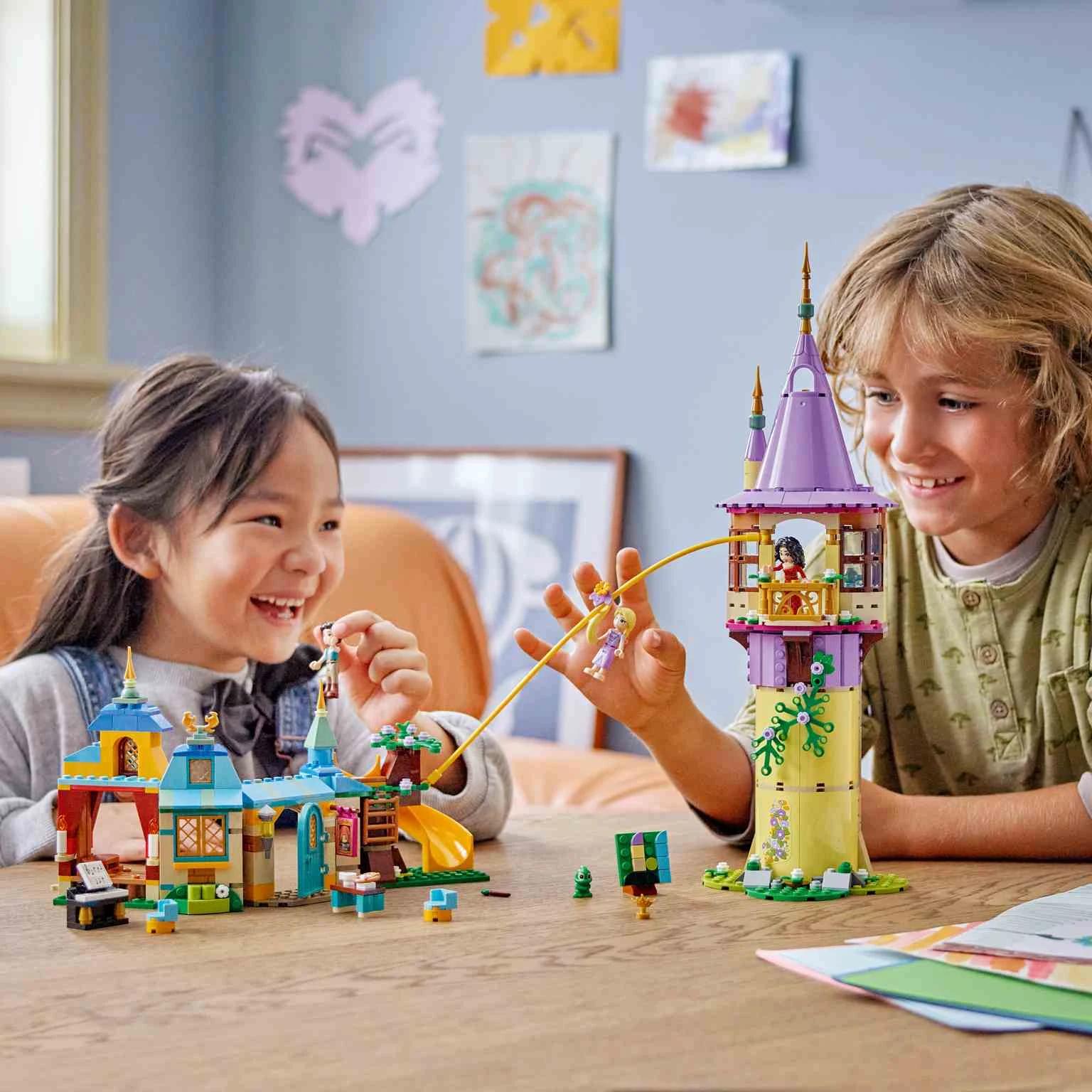 A los fans de Enredados de Disney y los niños de 6 años o más les esperan un montón de nuevas aventuras en el set de juguetes de construcción LEGO® ǀ Disney Princess Torre de Rapunzel y El Patito Frito (43241). La caja contiene una torre de 4 niveles con un laboratorio secreto, una cocina/sala de arte, una alcoba, una tirolina hacia la taberna y un cajón con más pinturas y elementos. La taberna El Patito Frito se puede abrir para ver el interior, donde hay una mesa móvil, sillas y un piano de juguete construible. El set de construcción incluye minipersonajes LEGO ǀ Disney de Rapunzel, Flynn Rider y Madre Gothel, una figura LEGO ǀ Disney de Pascal, la sartén de Rapunzel y montones de elementos de iniciación al juego. Este set es un divertido regalo para mayores de 6 años que pronto estará en boca de todos y que refuerza la confianza de los niños mediante la fantasía. Además, con la app LEGO Builder, dispondrán de herramientas digitales que les asisten en el proceso de construcción.