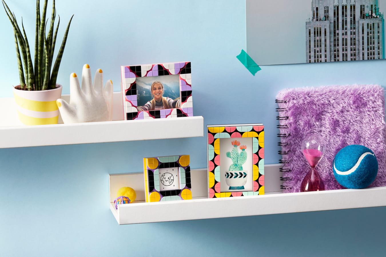 • Este divertido kit de manualidades incluye vistosas piezas decorativas. ¡Tu peque podrá usar también las piezas de otros sets DOTS o del pack DOTS Extra: Edición 2 (41916) para decorar los marcos a juego con su habitación!