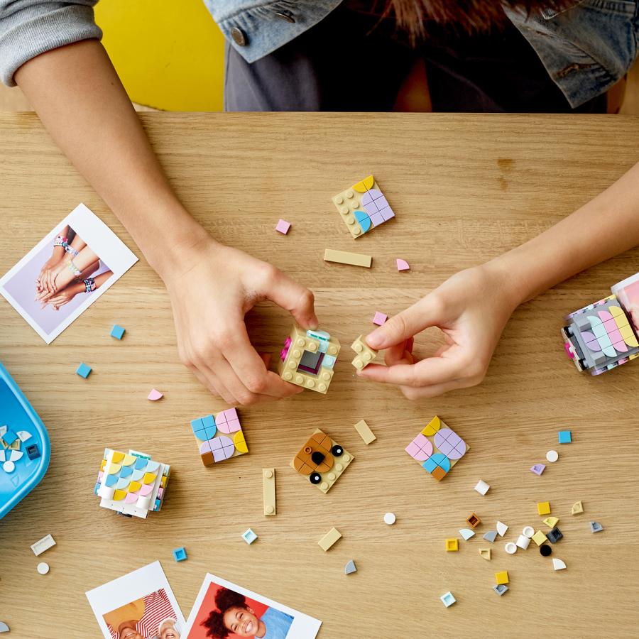 • Fomenta la pasión de tu peque por los proyectos DIY creativos con este dulce set de cubos LEGO® DOTS (41904), que contiene 3 cubos de animales con tapas y portafotos. El juego empieza con el propio ensamblaje de los Portafotos Animales, ¡nada más abrir la caja!