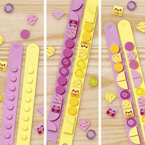 Descubre a tu peque la diversión de crear pulseras de la amistad personalizadas con el juguete de edición limitada LEGO® DOTS Pulseras Amigas y Helados (41910), que contiene 2 bandas ajustables de una sola línea de espigas y 32 vistosas piezas decorativas.