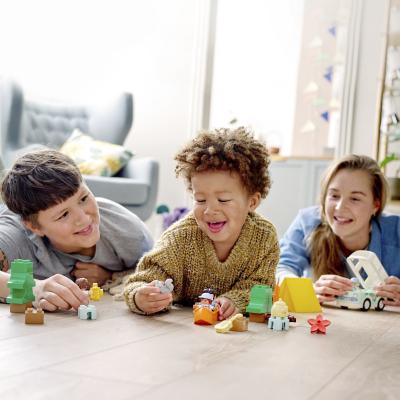 Llévate a tu bebé de acampada al bosque y haced un montón de divertidas actividades en familia. Sentad a 3 personajes en la autocaravana y cargad el equipo en el techo. ¡Conducid con cuidado para que no se caiga nada! Montad la tienda cuando lleguéis y luego salid en canoa por el río a vivir aventuras. No olvidéis la cámara. Después de tantas emociones, cantad todos juntos alrededor de la hoguera mientras los adultos os relajáis tomando un poco de té.