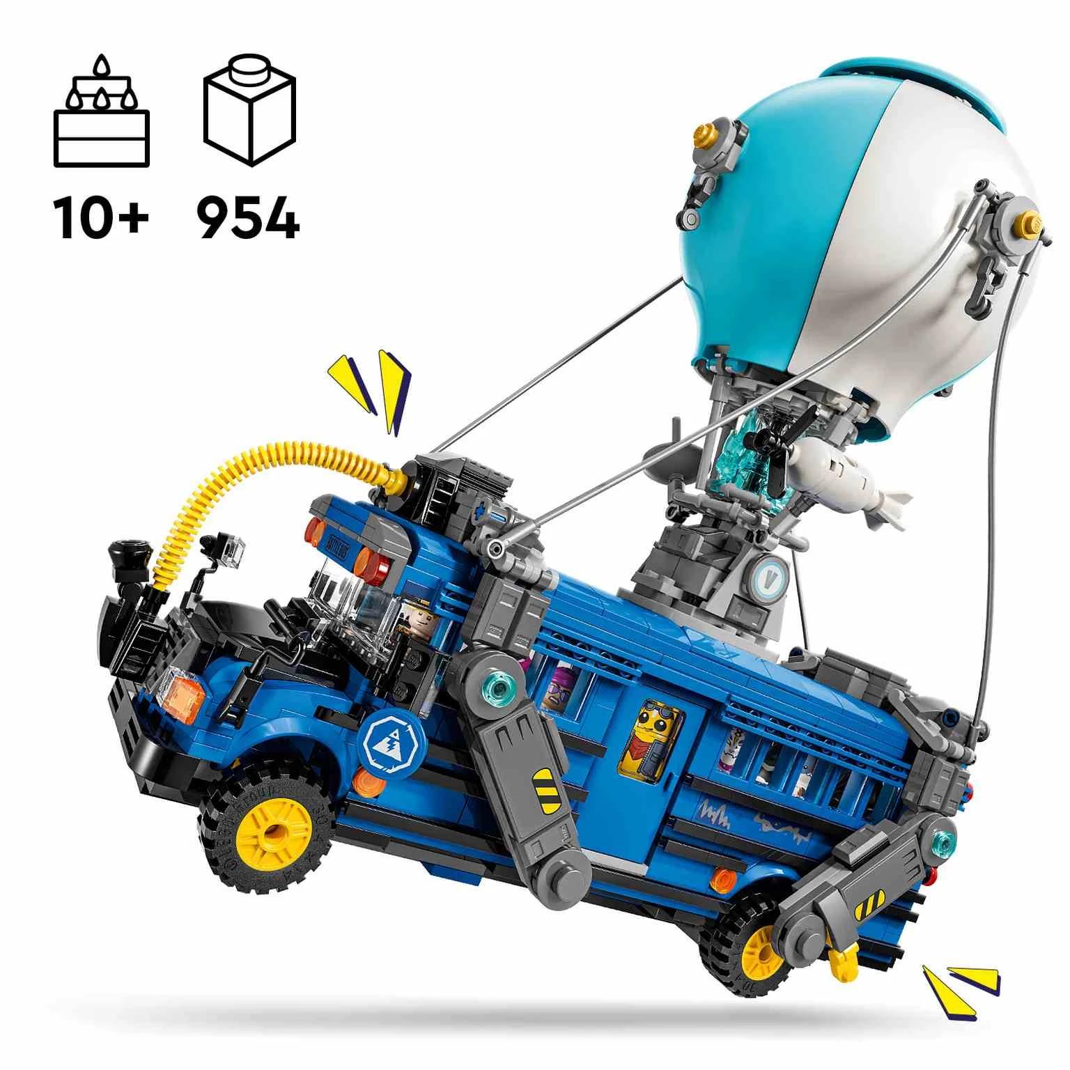 ¡Arranca la imaginación de tu peque de 10 años o más con el juguete LEGO® Fortnite® Autobús de batalla (77073)! Basado en el emocionante videojuego, el set de construcción ofrece a los gamers la oportunidad de crear un fantástico vehículo de Fortnite. Los fans viajan hacia el apasionante mundo de LEGO Fortnite mientras construyen el autobús, equipado con ruedas que giran y techo desmontable, y el globo aerostático, reconocible al instante. ¡Pero eso es solo el principio! Una vez terminado el bus, les encantará descubrir los emblemáticos accesorios, como un sorbete, un lanzaventosas, picos y un zumo de subidón, así como las 9 minifiguras de icónicos trajes de Fortnite. Para dar vida a la aventura, podrán sentarlas en el vehículo e interpretar historias. Cuando los niños acaben de jugar con el juguete coleccionable, se convertirá en una pieza de exposición LEGO ideal para decorar la habitación o el cuarto de juegos. ¡Y también es un regalo muy acertado para gamers y fans de LEGO Fortnite!