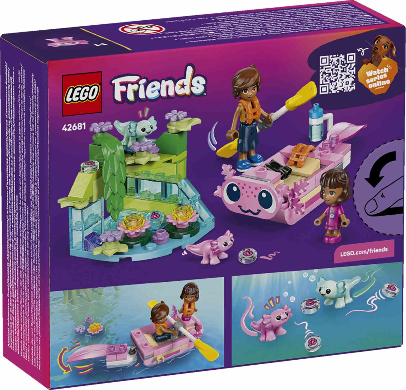 ¡Anima a tu peque a contar divertidas historias con el set LEGO Friends Aventuras en el Barco-Ajolote (42681)! El set incluye 1 mini muñeco, 1 micro muñeca, 2 mini ajolotes de juguete y accesorios para estimular el juego creativo.