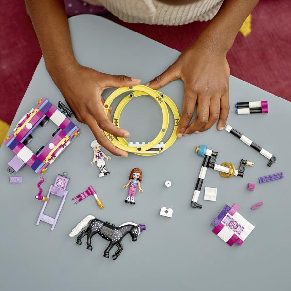 ¡Empieza con los ejercicios de calentamiento antes de presentar al público tu mágico espectáculo acrobático! Olivia y Stella están ensayando su número para el desfile. Ayuda a Stella a asegurarse bien en la rueda acrobática. Guía a Checkers, el caballo, mientras tira de la carroza que hace dar vueltas a Stella según avanza. Sube a Stella a la barra para que nos muestre sus habilidades realizando giros. Olivia camina sobre zancos en perfecto equilibrio… Pásale las banderas para que encabece el desfile con estilo.
