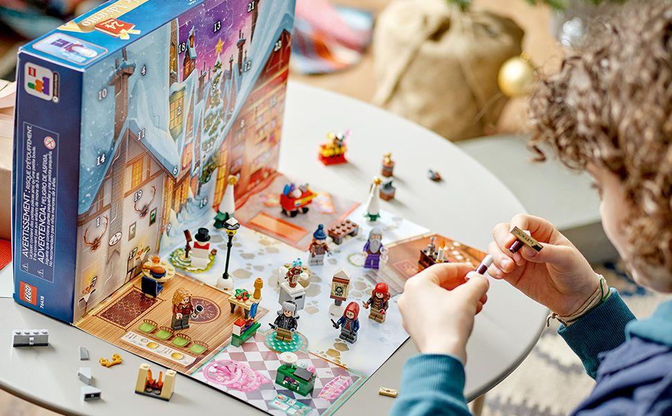 • Construye la cuenta atrás para unas Navidades mágicas: Tu peque descubrirá una sorpresa detrás de cada ventana del Calendario de Adviento LEGO® Harry Potter™ 2023 (76418) y podrá crear con ellas sus propias aventuras en la aldea de Hogsmeade™
