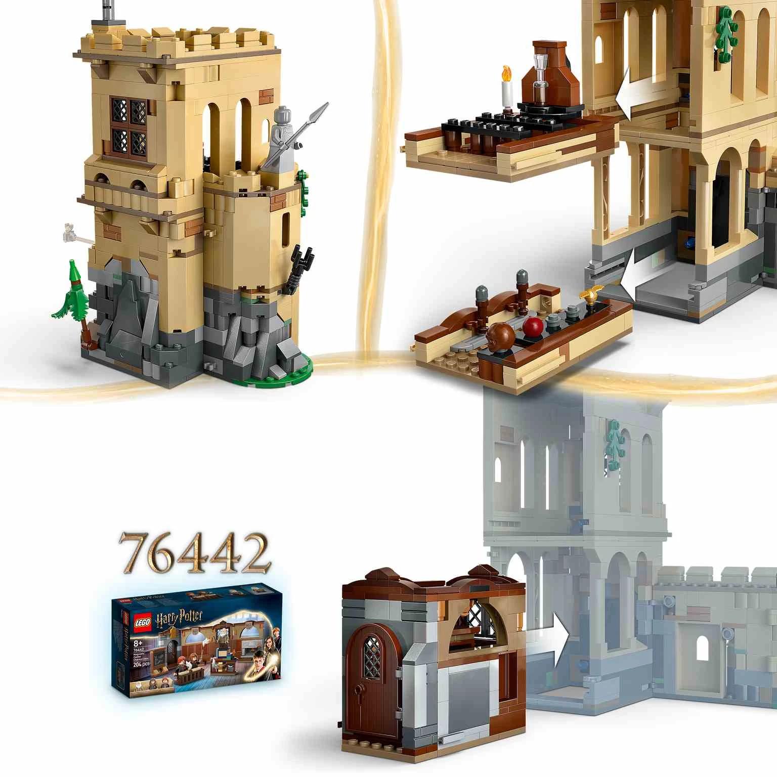 Recrea las clases de Quidditch™ y Transformaciones de Harry Potter y la piedra filosofal™ con el set LEGO® Castillo de Hogwarts™: Clase de Vuelo (76447). Este juego, ideal como regalo para niños, niñas y fans de Harry Potter™, presenta una seccióndel Castillo de Hogwarts que cuenta con el cuarto de equipamiento de Quidditch, el aula de Transformaciones, el despacho de la Profesora McGonagall y la sala de trofeos, donde se exponen 2 de los 14 cuadros de Hogwarts coleccionables. El edificio se ab re, el cuarto de Quidditch y el aula de Transformaciones se pueden sacar para jugar cómodamente, y hay divertidas funciones de vuelo en escoba y una función de transformación para fomentar el juego creativo. Este set de juguetes para jugar y exponer incluye 6 personajes de Harry Potter. Explora esta colección LEGO Harry Potter especial con sets modulares (a la venta por separado) que se conectan para crear la escena del Castillo de Hogwarts construida con ladrillos más detallada hasta ahora.