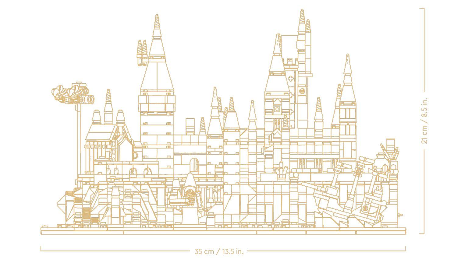 • Construye y expón: Este modelo de 2660 piezas del Castillo de Hogwarts™ mide aproximadamente 21 cm de altura, 35 cm de anchura y 25 cm de profundidad