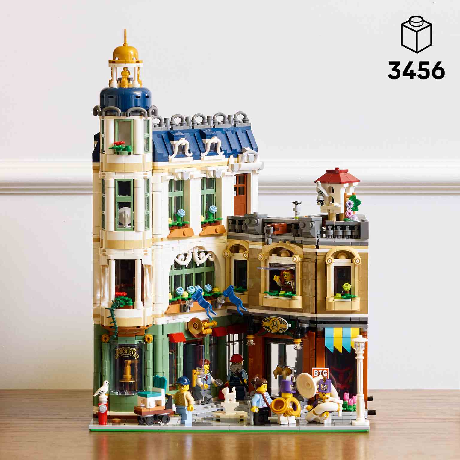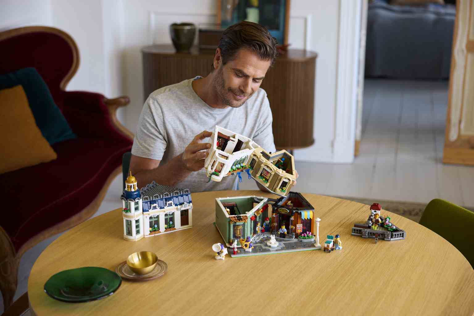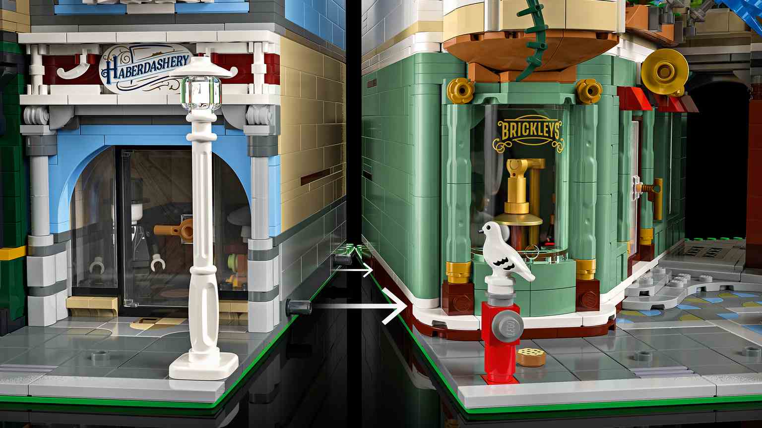 El edificio de 3 plantas incluye una tienda de música de 2 niveles con instrumentos para banda de desfile, y la tienda de muebles adyacente está equipada con mostrador, taburetes, mesa y taller. El último piso alberga un apartamento amueblado con baño, mientras que la azotea ajardinada cuenta con espacio para macetas y un palomar. Este kit de manualidades, cuyo diseño modular facilita el acceso al interior, viene con 7 minifiguras LEGO y es idóneo como decoración para el hogar. Este proyecto DIY para adultos es un gran regalo para mujeres y hombres apasionados por la arquitectura.