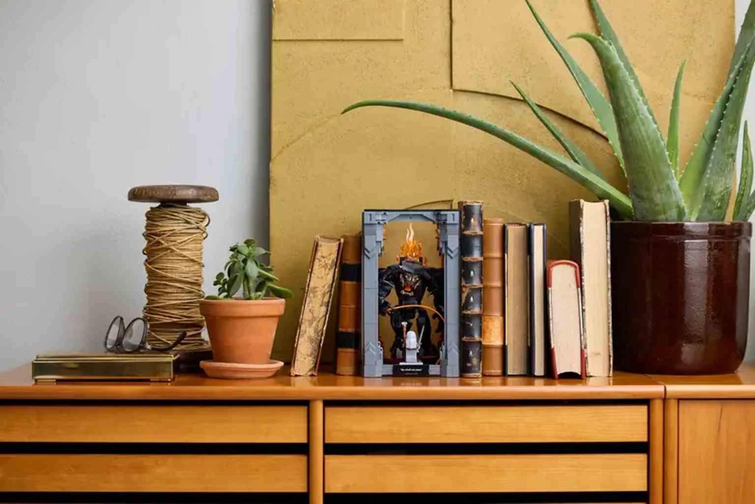 Crea una ventana con vistas a la Tierra Media con el kit de maquetas para adultos LEGO Icons Rincón entre Libros: El Señor de los Anillos: Balrog (10367), una divertida idea de regalo para lectores y fans de la legendaria trilogía cinematográfica. Desliza el sujetalibros entre tus novelas favoritas para asomarte al universo de fantasía de J. R. R. Tolkien o ábrelo para revelar una asombrosa escena basada en el épico enfrentamiento de Gandalf y el Balrog en el puente de Khazad-dûm. El set con figuras de personajes de El Señor de los Anillos es una gran pieza de decoración para la estantería de tu hogar u oficina, a la vez que es una maqueta de exposición que no dejará indiferentes a los amantes de la Tierra Media. El kit de construcción, que lleva una placa con las palabras “You Shall Not Pass”, presenta a Gandalf el Gris firme y desafiante, sin miedo, y al Balrog con sus imponentes alas desplegadas ante un muro abrasador de llamas. La minifigura de Gandalf tiene un bastón y una espada, y la figura del Balrog empuña un látigo y posee alas y extremidades articuladas.