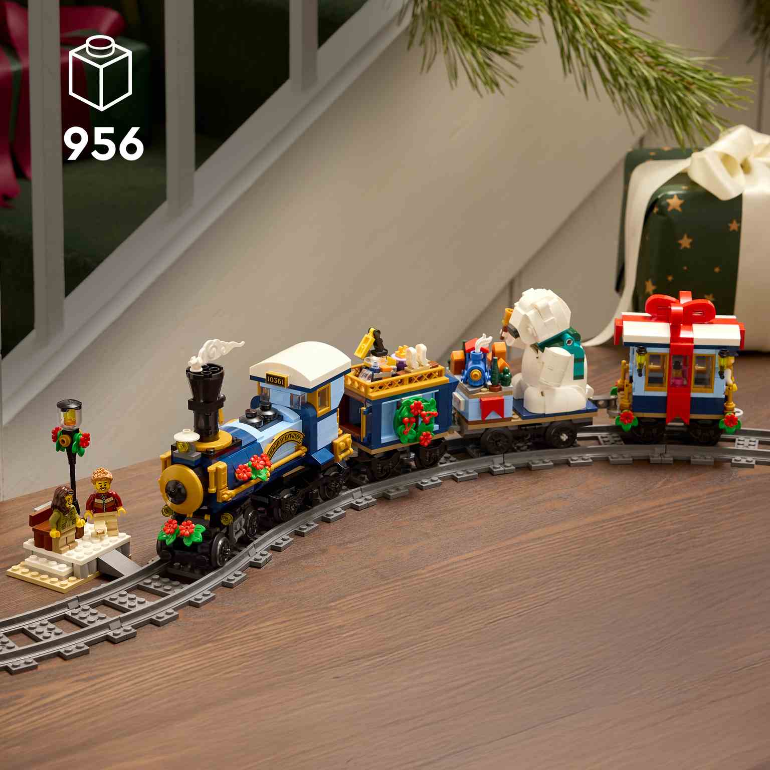 ¡El Tren Holiday Express LEGO® Icons (10361) acaba de llegar puntualmente a su destino! Construye una locomotora con simpática chimenea móvil, ténder, plataforma (con un oso polar que hace sonar una campana) y furgón de cola totalmente equipado. Después, encontrarás que este kit de construcción para adultos incluye también 4 minifiguras y un andén con banco y farola, además de juguetes en miniatura como, por primera vez en un set LEGO comercial, un elemento que representa un tren impreso en 3D. Monta la vía alrededor de tu árbol de Navidad y agrega el kit LEGO Powered Up (a la venta por separado) para motorizar la locomotora.