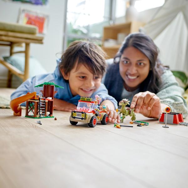 Pasa el rato en el Campamento Cretácico con Ben, Brooklynn y Claire Dearing. Conduce el todoterreno hasta la genial casa del árbol, que cuenta con una cama, un lavabo, un inodoro, una escalera, ¡e incluso un tobogán para Bumpy, la cría de Ankylosaurus! Pero ten cuidado: un Stygimoloch ha huido y está sembrando el caos en isla Nublar. Usa la zanahoria para devolver al dinosaurio a la jaula sin peligro. ¡Luego recoge todas las caquitas de dinosaurio con la pala!