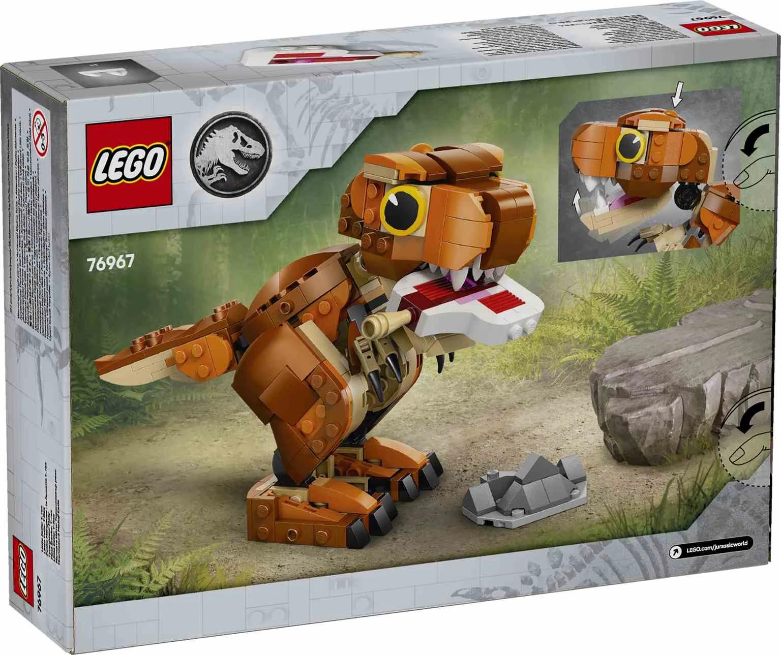 El modelo de dinosaurio de juguete LEGO® Jurassic World Little Eatie: T. rex (76967) para jugar y exponer ofrece emocionantes aventuras a los jóvenes fans de los dinosaurios a partir de 7 años. Tu pequeño cuidador de dinosaurios podrá montar este kit LEGO para luego sumergirse en el juego explorando el mundo prehistórico con Little Eatie, el personaje de Jurassic World: Campamento Cretácico. El set Jurassic World: Teoría del Dinocaos contiene una figura de T. rex construida con ladrillos dotada de mandíbula interactiva para masticar, así como cola y extremidades móviles. Al terminar de jugar, el juguete puede exponerse en una estantería o sobre el escritorio. Este regalo es perfecto para propiciar el juego imaginativo, y puede combinarsecon otros modelos LEGO Jurassic World (a la venta por separado). Este set LEGO permite a tu peque recrear escenas de la serie o exhibir su pasión por Jurassic World. Tiene además el tamaño idóneo para llevarlo contigo a cualquier lugar.