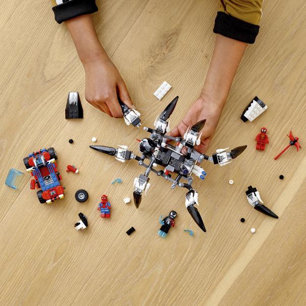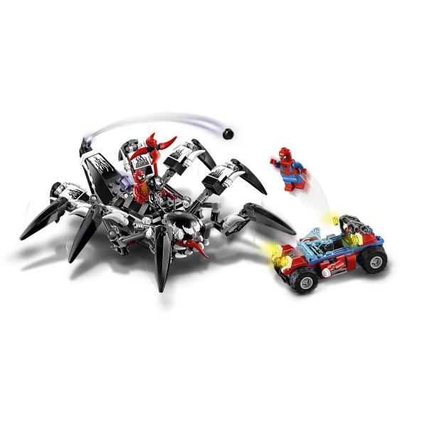 ¿Qué pasaría si Venom se enfrentara a Spider-Man? ¿Y si Carnage se uniera también al conflicto? Para hacerlo todo aún más emocionante, Spider-Man conduce su buggy y Venom ha entrado en Iron Man mientras controla su poderosa criatura mecánica. Con 8 patas móviles y un cañón que dispara en la parte trasera, ¡necesitarás todos tus poderes de superhéroe para derrotar a este monstruo! ¿Qué sucederá a continuación? Tú decides…
