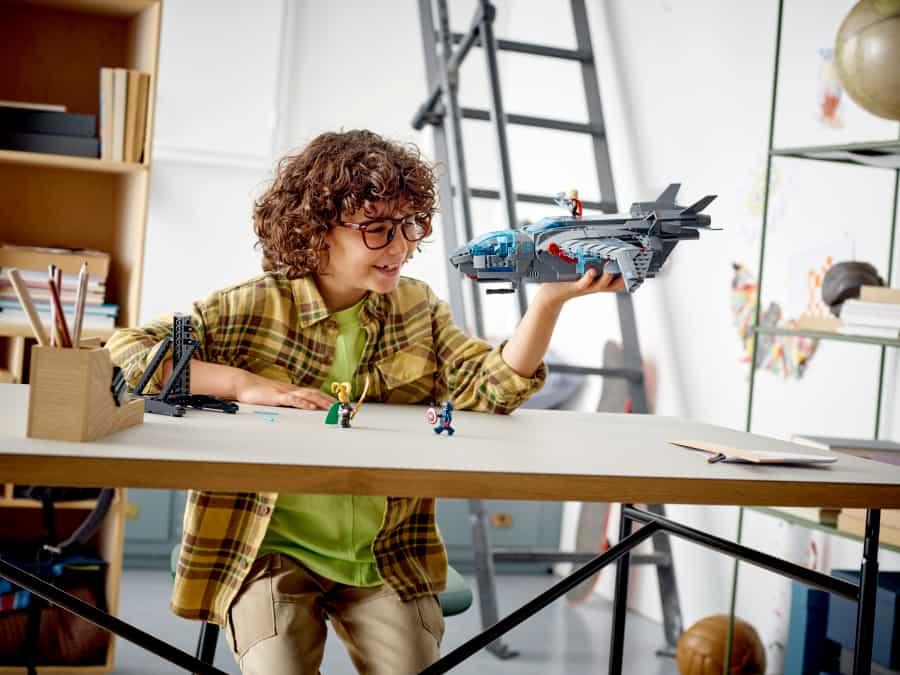 El set LEGO® Marvel Quinjet de los Vengadores (76248) permite a los peques de 9 años o más construir y exponer una fiel recreación de la inconfundible aeronave de los famosos superhéroes, ¡y viajar por el universo acompañando a los Vengadores en infinitas aventuras!