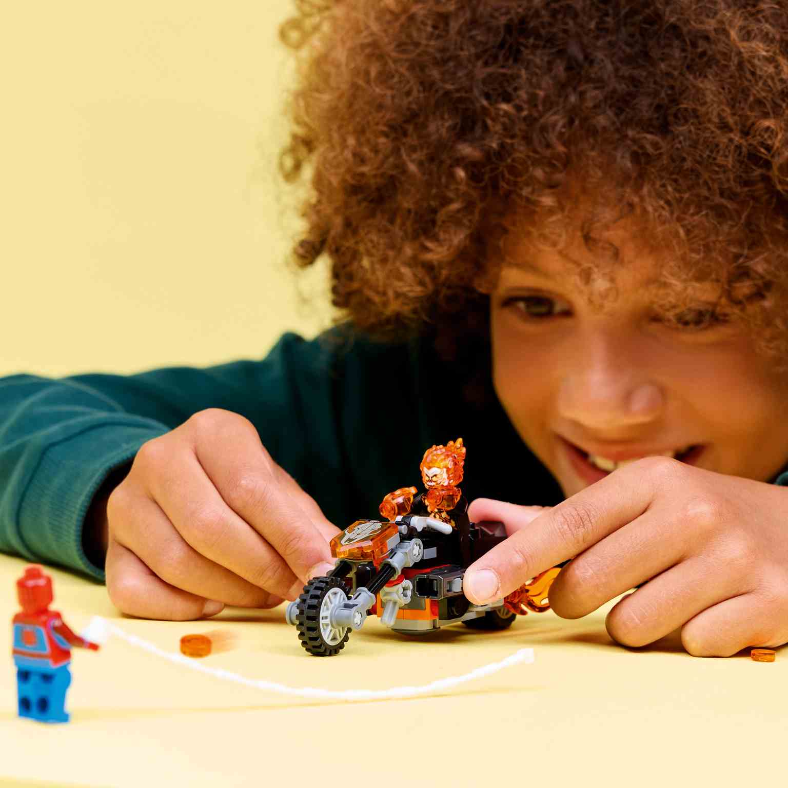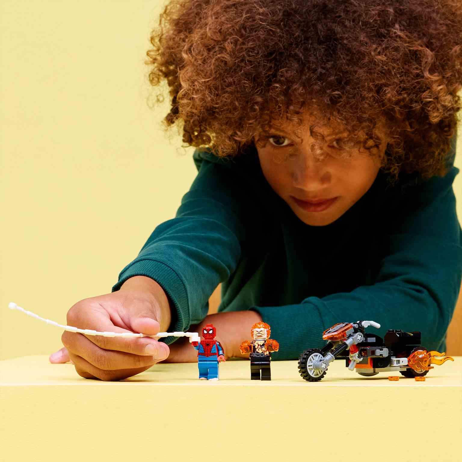 La minifigura del Motorista Fantasma se representa como un esqueleto con llamas en las manos y la cabeza. Su maqueta de moto cuenta con 2 tubos de escape llameantes y 2 cañones. La cuerda arácnida de la minifigura LEGO de Spider-Man se engancha a la moto y ofrece infinitas posibilidades de juego sobre el vehículo o a pie. Este juguete de superhéroes es un óptimo regalo para cualquier joven superhéroe, constructor LEGO o coleccionista de todo lo relacionado con Spider-Man. Además, con la app LEGO Builder y sus instrucciones digitales fáciles de seguir, los peques podrán construir con confianza.