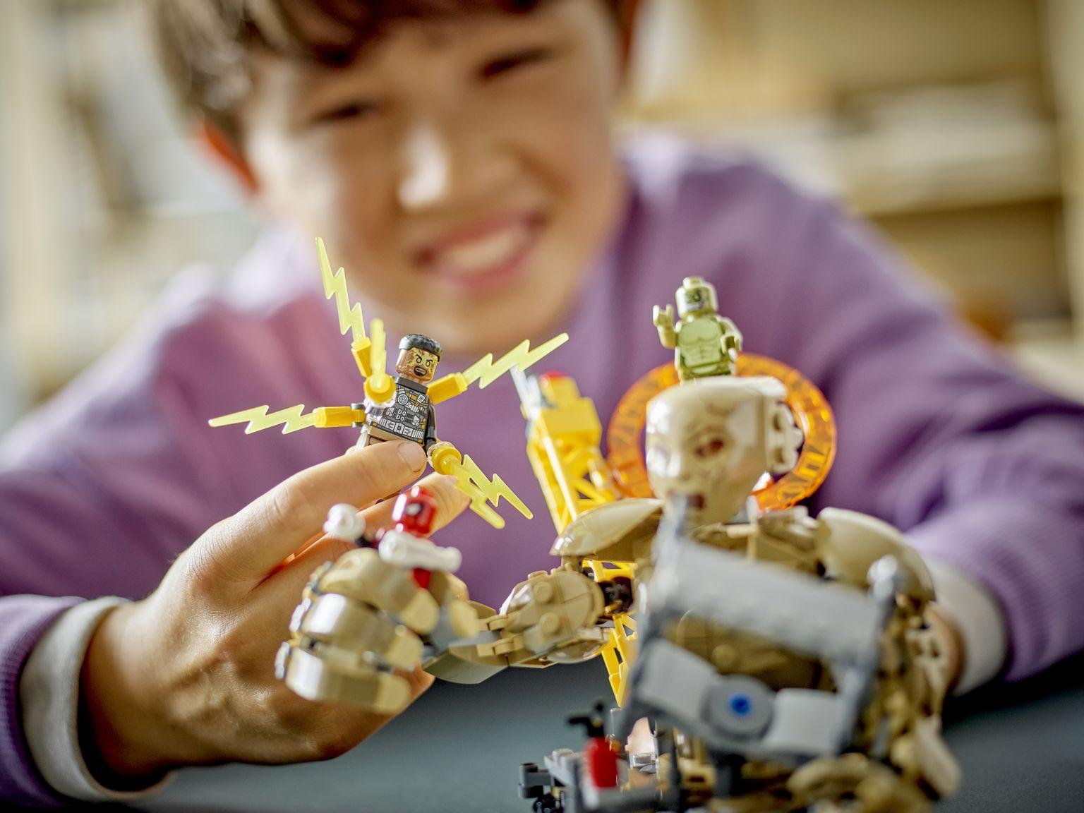 Si buscas regalos de tendencia para tu joven superhéroe o superheroína, el set LEGO® Marvel Spiderman vs. Sandman: Batalla Final (76280) es un juguete de acción construible que cualquier amante de las películas de Marvel querrá tener. Inspirado enSpider-Man: No Way Home, la película de Marvel Studios, es un fantástico regalo para niños y niñas de 10 años o más. Este set LEGO Marvel Spider-Man construible incluye 3 villanos: Sandman, Electro y Lagarto (es el primer kit LEGO Marvel con la minifig ura de Lagarto). Diseñado con múltiples lugares donde colocar las minifiguras, ofrece infinitas posibilidades de juego y exposición. Los niños pueden mover las articulaciones de Sandman y usar sus enormes manos para agarrar a Spider-Man mientras pasa por encima balanceándose de una “cuerda” arácnida flexible. También pueden combinar su juguete Marvel con el set Batalla Final de Spider-Man (76261), a la venta por separado, y pasarlo genial construyéndolo con la ayuda de la app LEGO Builder.