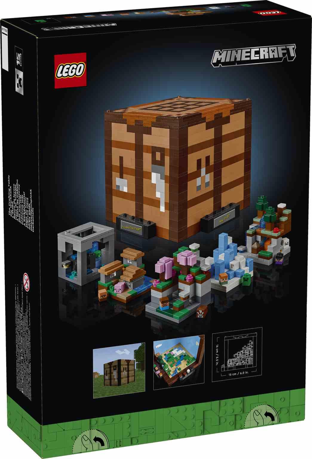 Celebra la creatividad de Minecraft® con este set de construcción LEGO® diseñado con motivo del 15 aniversario del famoso videojuego. Dentro de la Mesa de Trabajo LEGO Minecraft (21265), los fans adultos descubrirán conocidos biomas, populares criaturas y sorpresas ocultas. El set recrea la icónica mesa de trabajo del juego. Contiene 5 módulos de minimodelos que representan 12 biomas Minecraft: Taiga (con una cueva de espeleotema), Llanura (con una aldea), Picos de Hielo (con un iglú), Cerezal (con un pozo de mina abandonado), Oscuridad Profunda (con una cueva frondosa) y más. Además, incluye 8 microfiguras: Steve, Alex, un esqueleto, una bruja, un Creeper™, un aldeano, una vaca y un cerdo. Los minimodelos y las microfiguras pueden sacarse del modelo principal, lo que permite exponerlo de diversas formas personalizadas. ¡Y hay pegatinas con frases memorables para colocarlas en el modelo Minecraft! Las instrucciones de construcción también están disponibles en la app LEGO Builder.