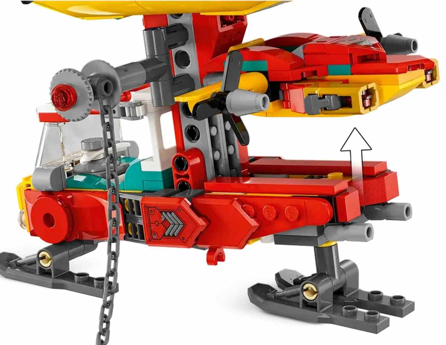 Crea un globo de juguete como el dela temporada 4 de la serie para televisión LEGO® Monkie Kid™, con cañón en la parte superior, planeador separable con 2 cañones, cabrestante, alas ajustables y espacio de almacenamiento.