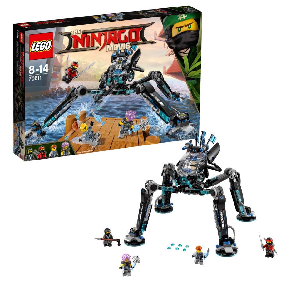 ¡Patrulla por los canales y la bahía de la ciudad de NINJAGO® con el asombroso Guerrero acuático de Nya! Imagina que caminas sobre el agua y escalas paredes con sus patas articuladas y pies flotantes. Responde a los ataques del ejército Tiburón con el cañón rápido de 6 proyectiles. Usa las 2 espadas de Kai para evitar que el enemigo se sujete al robot. ¡Puffer y el secuaz del ejército Tiburón no tienen ninguna oportunidad contra los ninja y el Guerrero acuático!