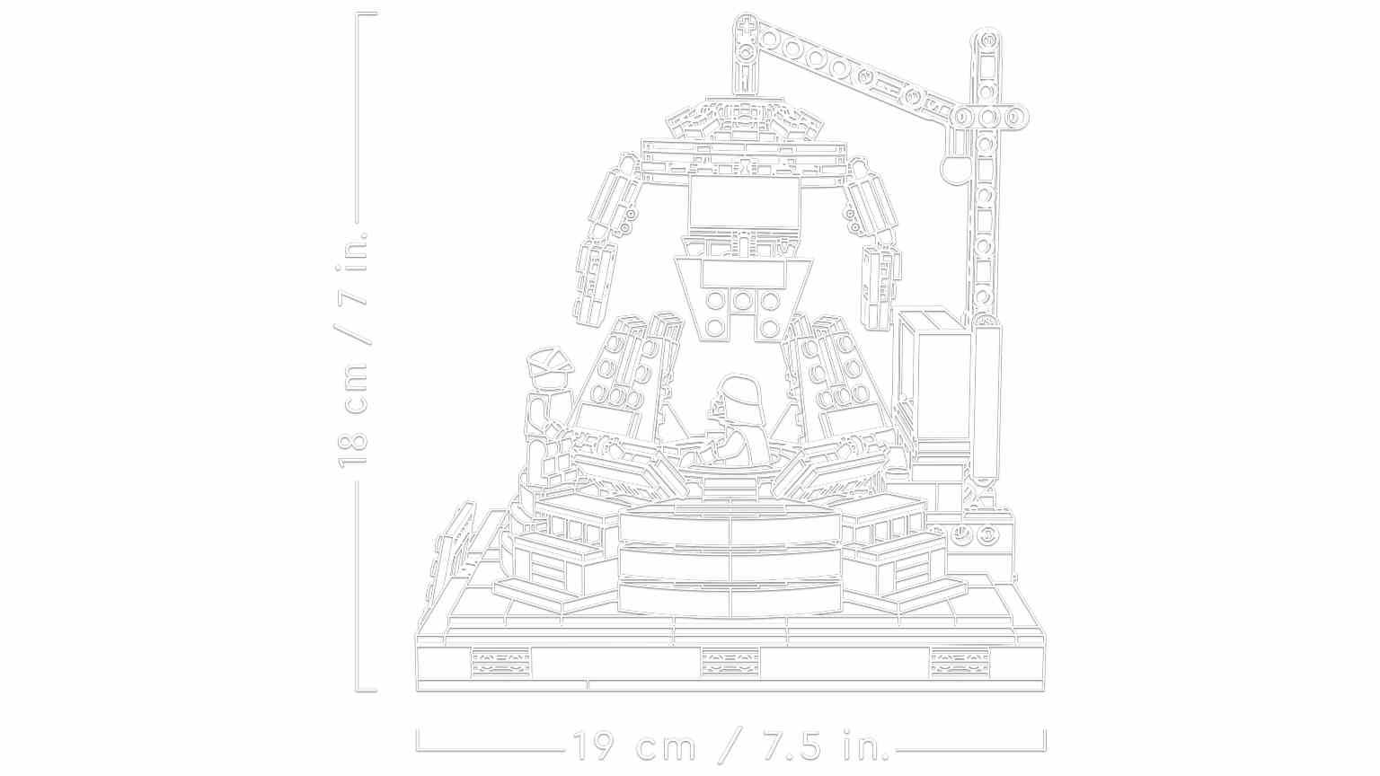 Esta maqueta para construir y exponer viene acompañada de 2 minifiguras LEGO® Star Wars™: Darth Vader y el General Veers, con una pistola bláster.