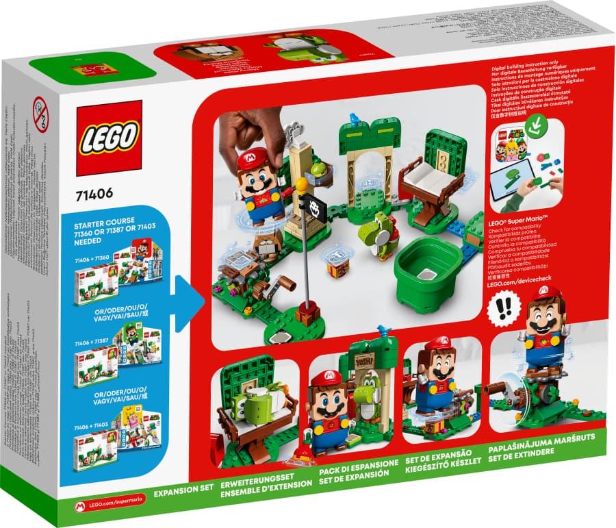 Los peques pueden agregar otro divertido nivel a su mundo de LEGO® Super Mario™ con el Set de Expansión: Casa-regalo de Yoshi (71406), que cuenta con Yoshi y un Topo Monty. Los jugadores lo explorarán todo y ganarán monedas digitales con sus figuras interactivas de LEGO® Mario™, LEGO® Luigi™ o LEGO® Peach™ (no incluidas). Saluda a Yoshi en la puerta, échate una siesta en la cama de Yoshi, coge piezas de fruta, da vueltas en el carrusel de premios para que se vuelvan doradas y usa la caja de regalo para compartirlas con otra figura interactiva. O, simplemente, dale la fruta a un personaje simpático, como Yoshi. (Nota: Para jugar de manera interactiva, necesitas el pack inicial 71360, 71387 o 71403).