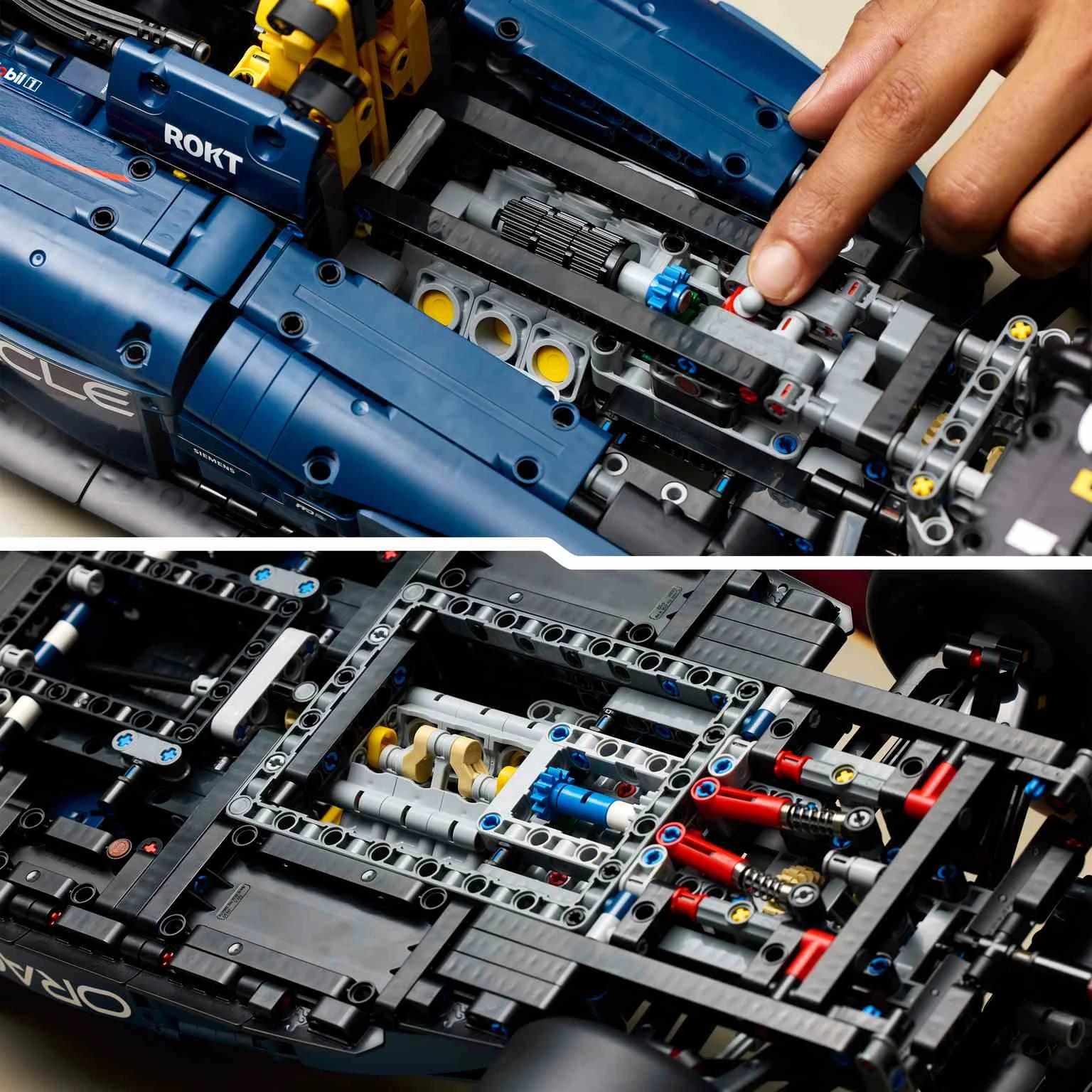 Abróchate bien el cinturón antes de sumergirte en un apasionante desafío: construir el Coche Oracle Red Bull Racing RB20 F1 LEGO® Technic. Revive la emoción del momento en que se apaga el semáforo mientras construyes el motor V6, la dirección y lacaja de 2 velocidades. Después de ondear la bandera de cuadros, expón tu maqueta para admirar los colores distintivos del equipo Oracle Red Bull Racing.